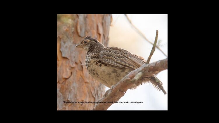 В фотообъектив ученого Чернобыльского радиационно-экологического биосферного заповедника попал подросток рябчика. Его удалось снять после того, как он в испуге вспорхнул на ветку после песчаной ванны.