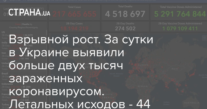 Министерство здравохранения Украины представило очередной отчет по ковид-статистике. В первый день осени, 1 сентября, число зараженных коронавирусом в стране выросло еще на 2 075 человек.