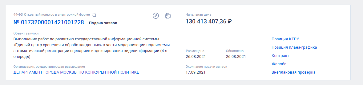 Об этом свидетельствует информация, обнародованная на официальном сайте Единой информационной системы в сфере закупок.