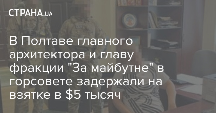 В Полтаве главного архитектора и главу фракции "За майбутне" в горсовете задержали на взятке в $5 тысяч
