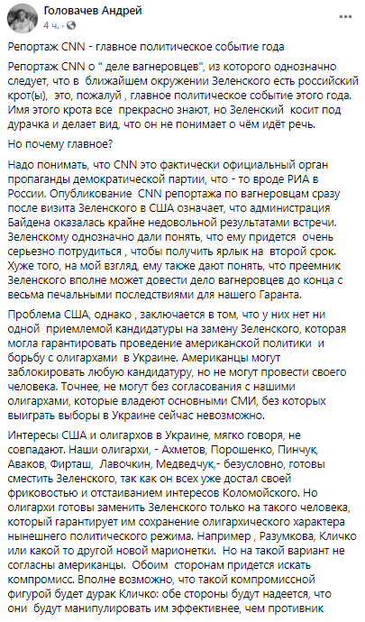 Политический эксперт Андрей Головачев назвал репортаж CNN "главным политическим событием года".