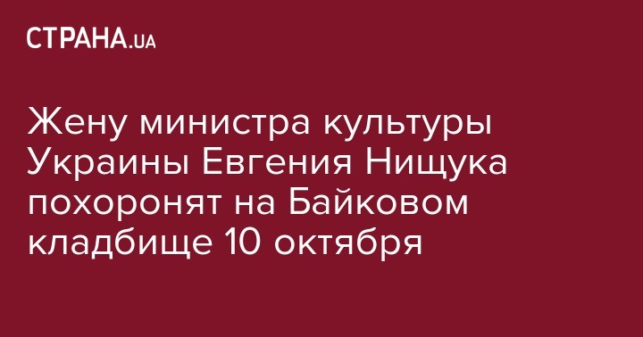 Жену министра культуры Украины Евгения Нищука похоронят на Байковом кладбище 10 октября