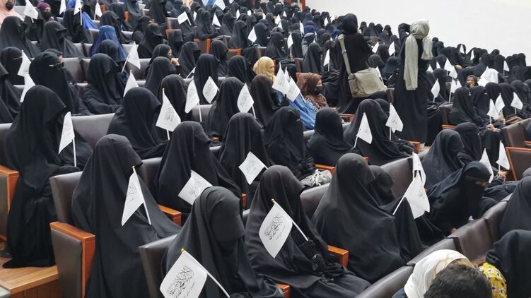 Участницы мероприятия выступали в поддержку решения талибов об обязательном хиджабе для женщин и раздельном обучении для студенток и студентов вузов. У протестанток были плакаты с проталибскими лозунгами.