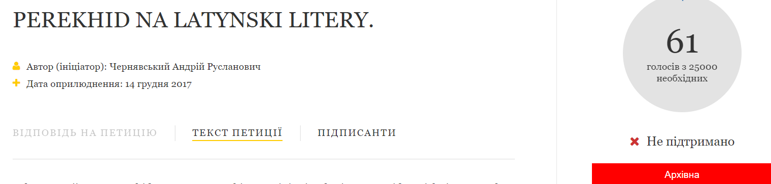Годом ранее президенту подали петицию о переходе на латиницу. Но ее поддержал с тех пор только 61 человек.