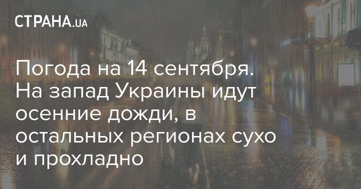 Погода на 14 сентября. На запад Украины идут осенние дожди, в остальных регионах сухо и прохладно