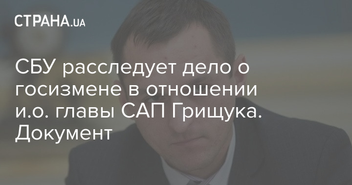 В Единый реестр досудебных расследований внесена информация относительно действий и.о главы Специализированной антикоррупционной прокуратуры Максима Грищука, которые могут трактоваться как государственная измена.
