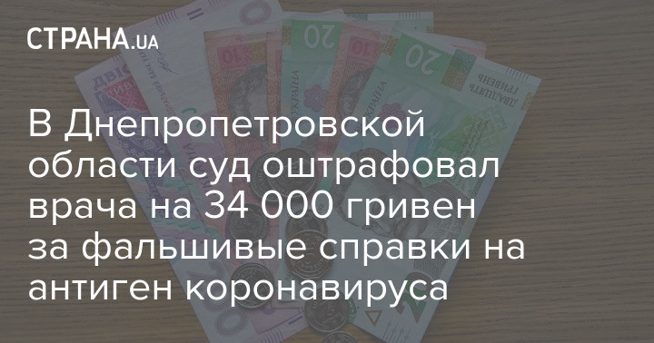 В Днепропетровской области суд вынес приговор и оштрафовал на 34 тысячи гривен семейного врача, который выдавал "липовые" справки о наличии антигена коронавируса в организме человека.