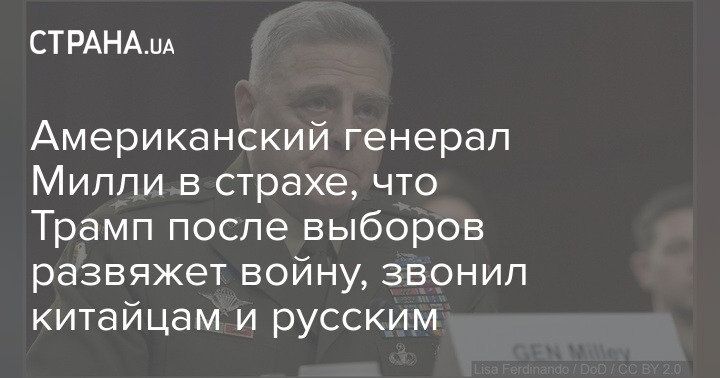 Председатель Объединенного комитета начальников штабов армии США во времена президентства Дональда Трампа генерал Марк Милли два раза тайно звонил китайским коллегам, чтобы предотвратить войну. Это происходило в последние месяцы правления Трампа.