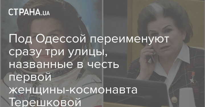 Речь идет об улицах имени Терешковой в Фонтанке, Крыжановке и Новой Дофиновке. Основанием для переименования является требование Закона Украины "Об осуждении коммунистического и национал-социалистического (нацистского) тоталитарных режимов в Украине и запрете пропаганды их символики". А Терешкова, как известно, занимала должность в высшем органе Советского Союза - президиуме ВС СССР.
