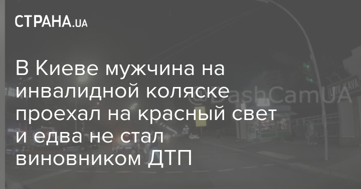 В Киеве мужчина на инвалидной коляске проехал на красный свет и едва не стал виновником ДТП