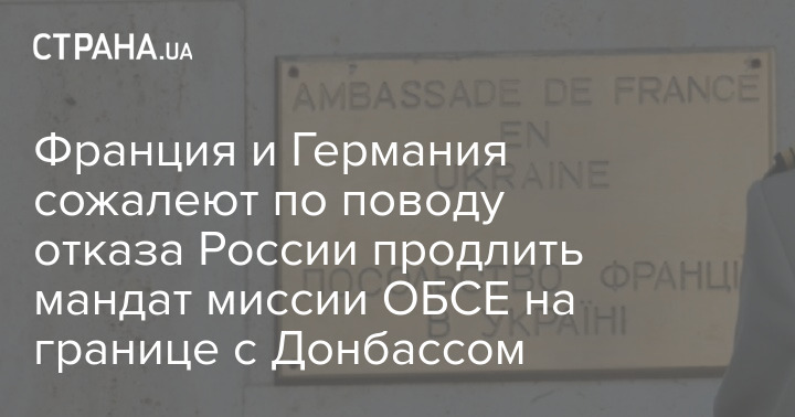 Франция и Германия сожалеют по поводу отказа России продлить мандат миссии ОБСЕ на границе с Донбассом