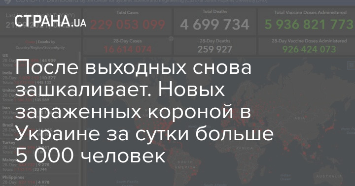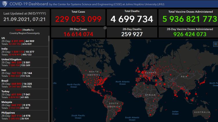 В целом на планете, по данным университета Джона Хопкинса на утро 21 сентября, число зараженных достигло отметки в 229 053 099 человек.