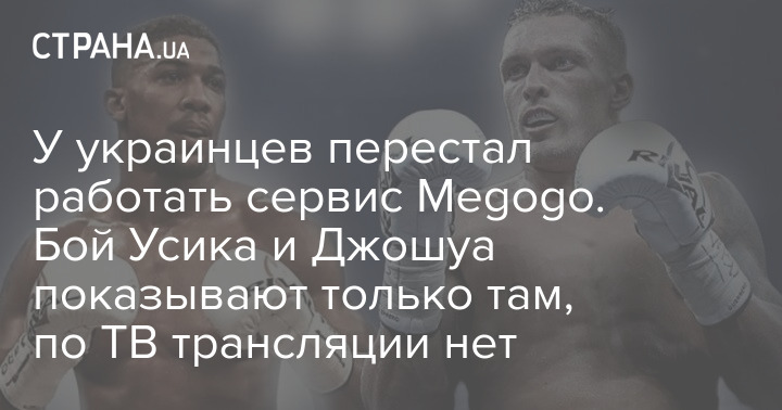 В субботу, 25 сентября, около 23:00, приблизительно за час до показа поединка между боксерами украинцем Александром Усиком и британцем Энтони Джошуа, у пользователей, которые заплатили за трансляцию встречи, перестал работать сервис Megogo. Данная платформа является единственной, которая легально показывает трансляцию в Украине. У отечественных телеканалов нет права на показ этого боя.