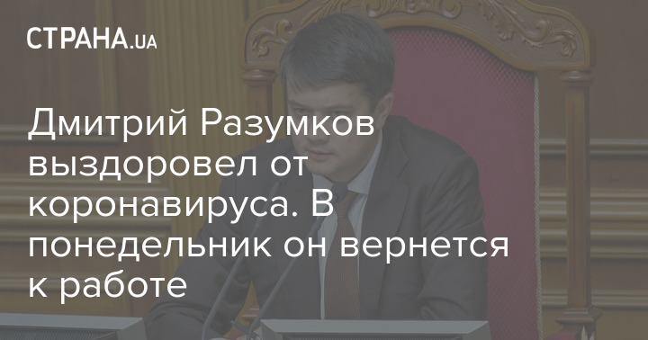 В воскресенье, 26 сентября, спикер Верховной Рады Дмитрий Разумков выздоровел от коронавируса.
