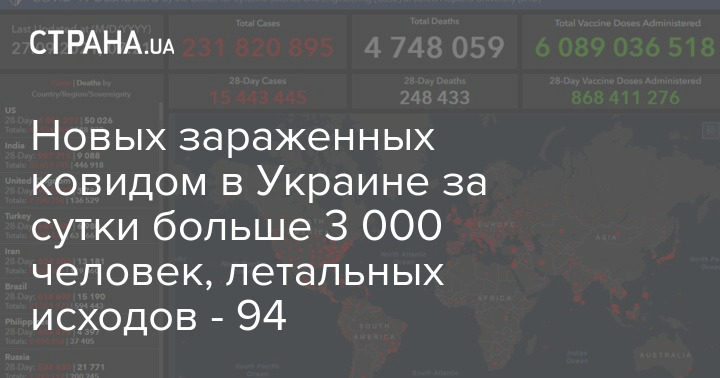 А по данным университета Хопкинса на утро понедельника на Земле уже 231 820 895 зараженных с начала пандемии.