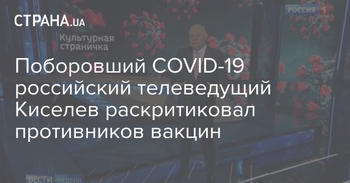 Поборовший COVID-19 российский телеведущий Киселев раскритиковал противников вакцин