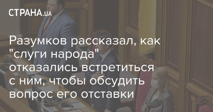 Спикер Верховной Рады Дмитрий Разумков рассказал, что фракция "Слуга народа", которая инициировала его отзыв с должности, отказалась встретиться с ним, чтобы обсудить вопрос его отставки с должности председателя Верховной Рады.