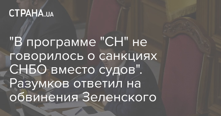 По поводу обвинений, что он не голосовал за санкции СНБО против СМИ (в том числе и против "Страны") и против оппозиции, Разумков сказал, что, по его мнению, СНБО в принципе не может вводить санкции против украинских граждан. И любые обвинения против них (например, в связях с террористами) должны быть доказаны через суд.