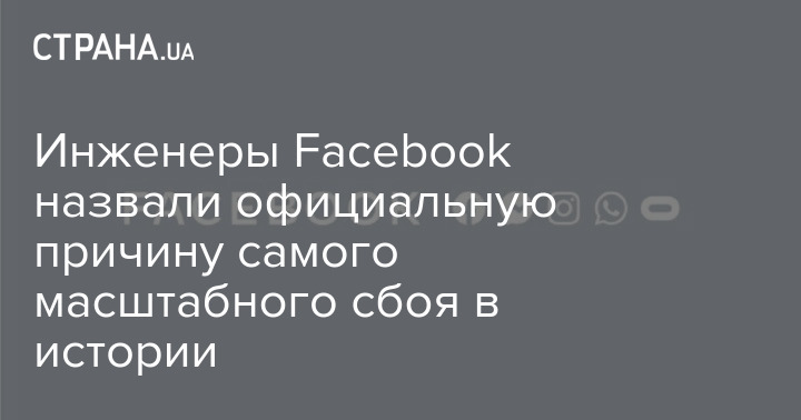 Специалисты компании Facebook Inc официально назвали причину глобального шестичасового сбоя в работе всех сервисов - Facebook, Instagram и Whatsapp. По их мнению самый крупный сбой в истории произошел 4 октября из-за изменения конфигурации маршрутизаторов.