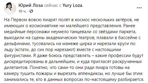 "Понятно, что сами-то они ради пиара готовы на камеру тушить пожары и вырезать аппендиксы, но лучше бы этим занимались те, кто в данных вопросах по-настоящему разбирается" - написал он.