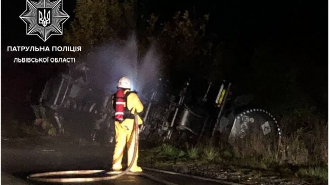 На трассе под Львовом цистерна с опасным химвеществом съехала в кювет, дорогу перекрывали и мыли
