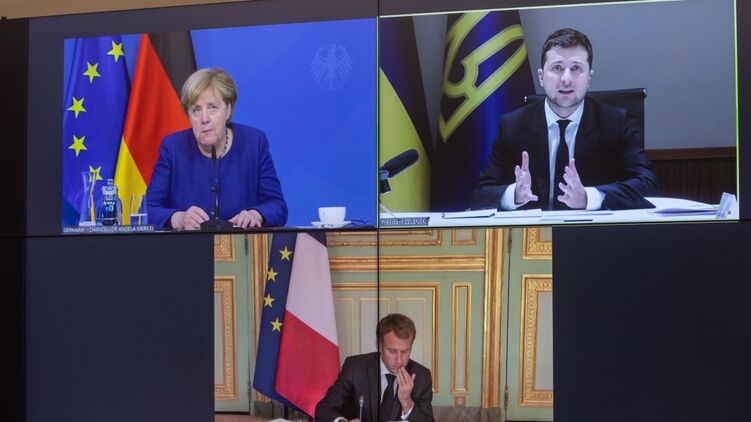 Президент Владимир Зеленский принял участие в видеоконференции с канцлером ФРГ Ангелой Меркель и президентом Франции Эммануэлем Макроном. Основное темой беседы стала ситуация на Донбассе и урегулирование конфликта в этом регионе.