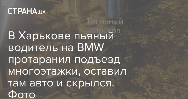 В Харькове пьяный водитель на BMW протаранил подъезд многоэтажки, оставил там авто и скрылся. Фото