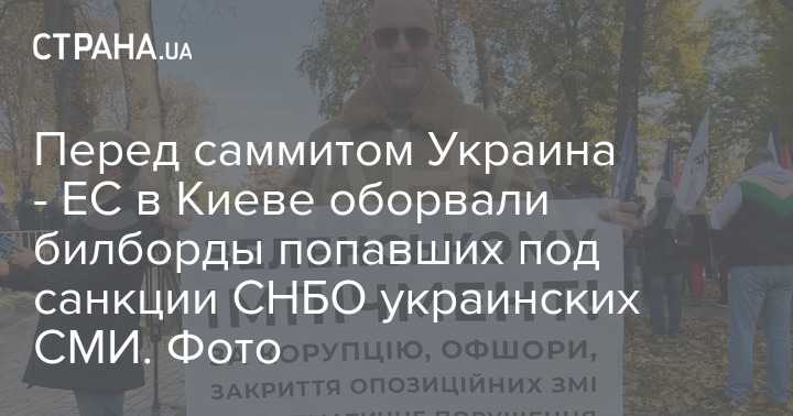 Напомним, попавшие под санкции СНБО украинские СМИ днем ранее обратились к участникам саммита Украина-ЕС. Билборды появились по всей столице, на пути следования гостей саммита.