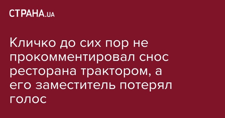 Кличко до сих пор не прокомментировал снос ресторана трактором, а его заместитель потерял голос