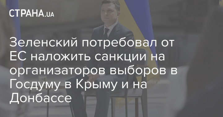 "В санкционные списки должны попасть все, кто принимал участие в организации и проведении выборов в Государственную Думу Российской Федерации в оккупированном Крыму, городе Севастополь и временно оккупированных территориях Украины на Донбассе ", - заявил Зеленский.