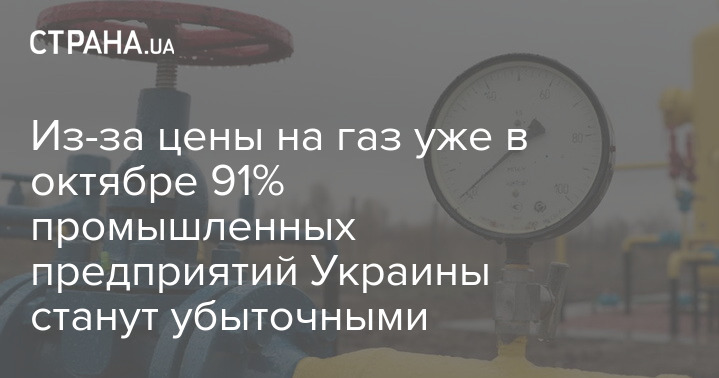 Из-за цены на газ уже в октябре 91% промышленных предприятий Украины станут убыточными