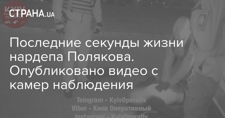 На кадрах показан сначала интерьер кафе, где проводил свой последний вечер парламентарий в компании двух мужчин, а потом дорога, на которую сотрудники Национальной полиции вытащили уже потерявшего сознание Антона. Видно, как полицейские делают лежащему на спине Полякову непрямой массаж сердца, а затем пытаются запустить его дефибриллятором.