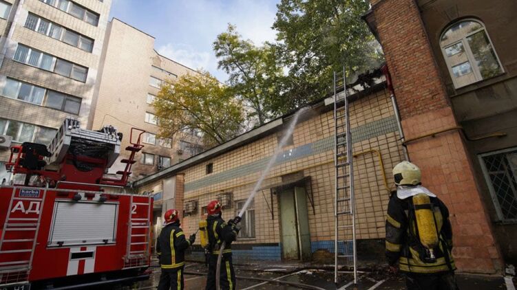В Киеве загорелось здание института урологии. Пожарные эвакуировали 15 человек и продолжают борьбу с огнем