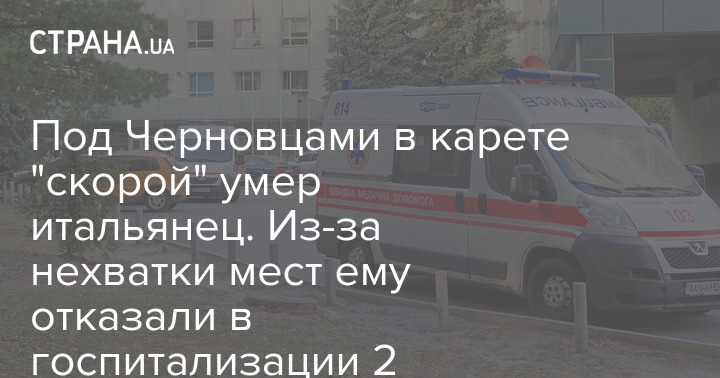 В связи с заболеванием, не связанным с коронавирусом, к итальянцу в Сторожинец (город в Черновицкой области) вызвали "скорую помощь". В двух больницах его отказались принять по причине нехватки мест в реанимационном отделении для пациентов без коронавируса. По дороге в третье медицинское учреждение 72-летний итальянец умер.