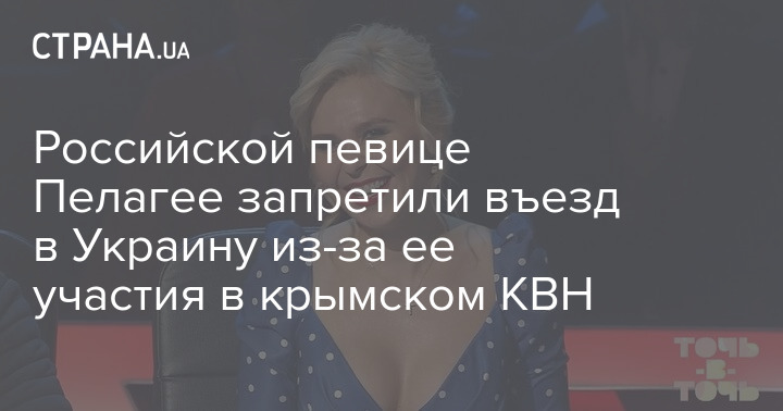 Российской певице Пелагее (полное имя Пелагея Телегина) запретили въезд в Украину. Основанием для запрета, скорее всего, стало незаконное посещения Крыма, где певица побывала летом на Летнем кубке чемпионов 2021 года КВН.