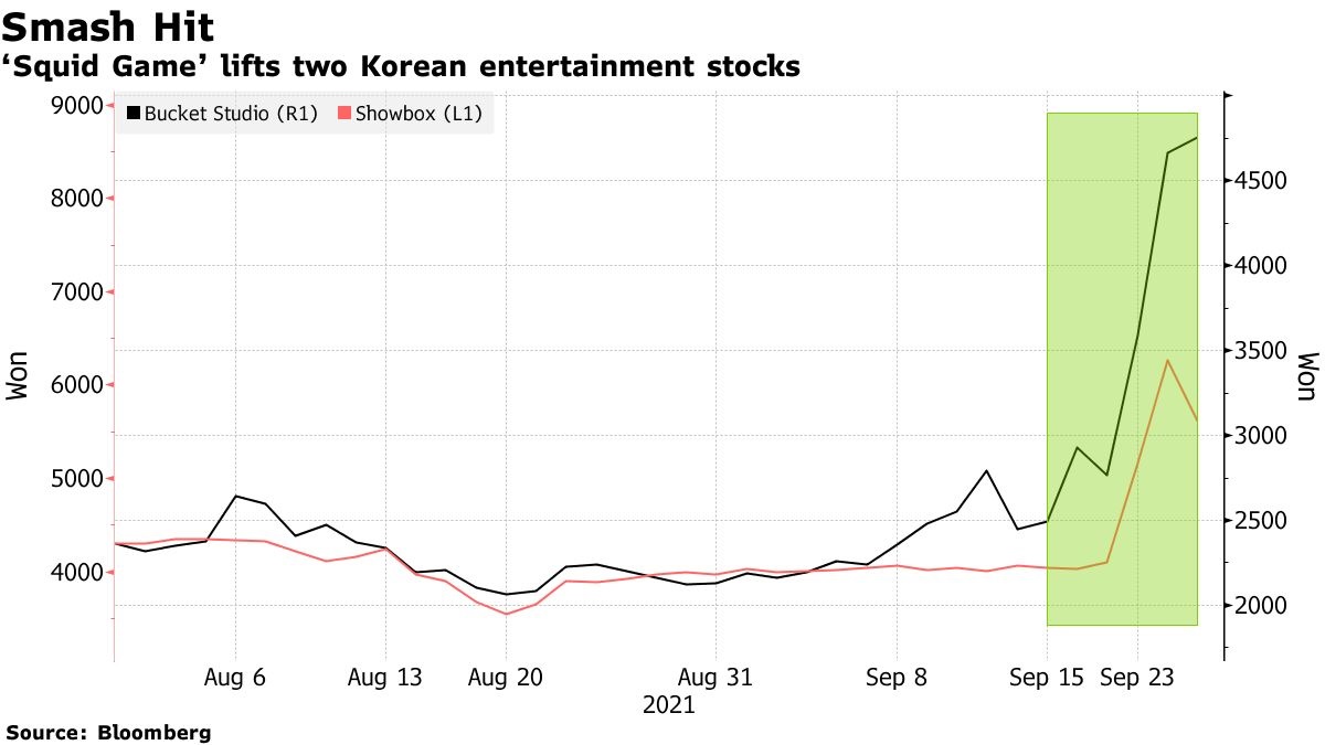 Впрочем, пока что никакие запреты не могут перебить ошеломительную волну успеха "Игры в кальмара". На его родине инвесторы спешат покупать акции компаний, представляющие главного актера и тем самым помогают продюсировать шоу.