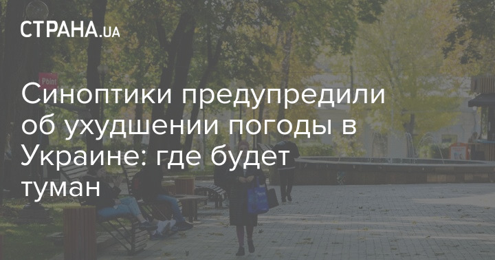 В воскресенье, 17 октября, в Украине ожидается существенное ухудшение погодных условий. Часть регионов накроет туман, свидетельствует прогноз Укргидрометцентра.