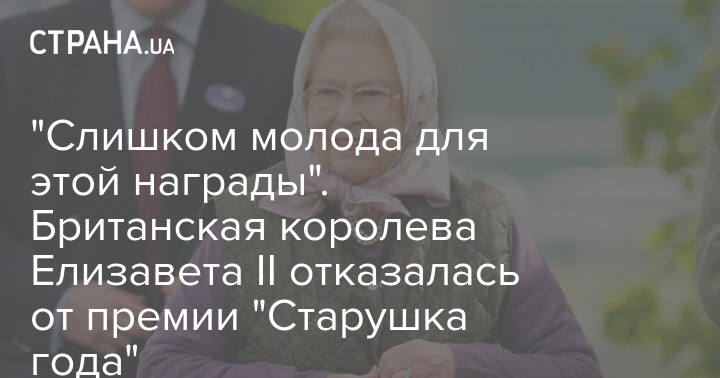 Британская королева Елизавета II (ей 95 лет - Ред.) отказалась от премии "Старушка года", которую ей присудил английский журнал The Oldie, поскольку "чувствует себя слишком молодой для этой награды". Об этом сообщил председатель премии Джайлс Брандрес на сайте журнала.