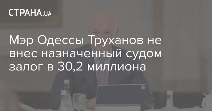 Мэр Одессы Геннадий Труханов, которого подозревают в незаконной раздаче земли, не внес 30,2 млн гривен залога в срок, назначенный Высшим антикоррупционным судом.