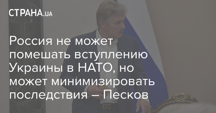 Пресс-секретарь российского президента Дмитрий Песков заявил, что Россия не может помешать вступлению Украины в НАТО, но минимизировать последствия таких шагов возможно.