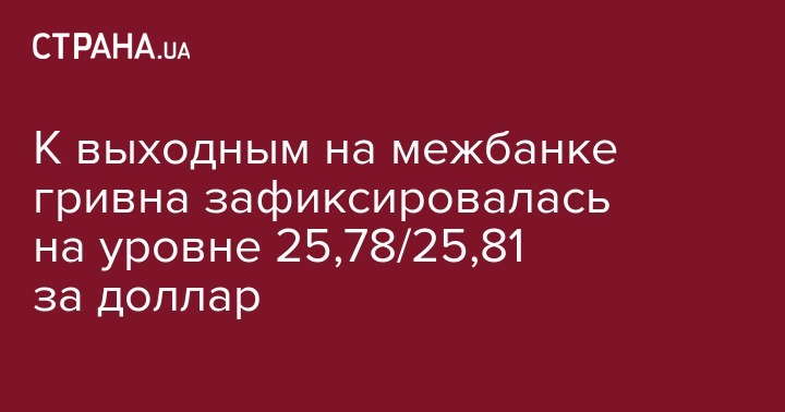 Средневзвешенный курс гривны на межбанке к 16:00 был зафиксирован на уровне 25,7908 грн/долл. Во время торгов была заключена 541 сделка на сумму $372,92 млн.