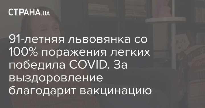 Во Львове 91-летняя женщина заболела COVID-19 и провела десять дней в больнице со 100% поражением легких и еще месяц дома с кислородным концентратором, но в итоге выздоровела. Перед тем как заболеть она успела вакцинироваться от коронавируса, пенсионерка предполагает, что именно прививки помогли ей в итоге преодолеть болезнь.