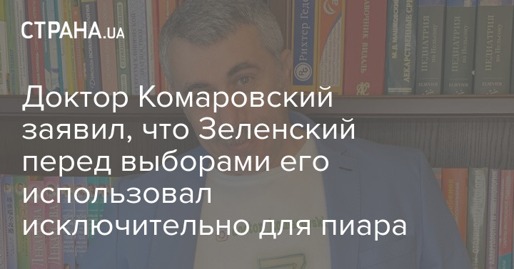 Известный украинский педиатр Евгений Комаровский заявил, что накануне выборов президента в 2019 году Владимир Зеленский использовал его только для пиара.