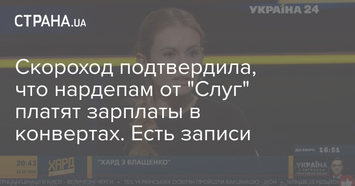 Бывший нардеп от "Слуги народа", а ныне народный депутат от партии "За Будущее" Анна Скороход подтвердила информацию "Страны" о том, что нардепам от "Слуги народа" платят зарплаты в конвертах, о чем мы подробно писали еще в октябре 2019 года. По словам Скороход, есть аудиозаписи, которые подтверждают эту информацию, а деньги распределяются по группам, которые существуют внутри "Слуги народа".