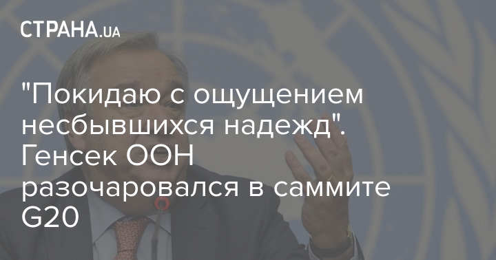 Генеральный секретарь Организации Объединённых Наций Антониу Гуттериш заявил, что покидает саммит G20 с ощущением несбывшихся надежд. Впрочем, по его словам, "они не похоронены".