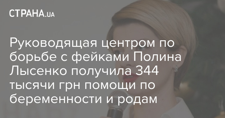 Руководитель Центра противодействия дезинформации Полина Лысенко получила 344 тысяч гривен помощи по беременности и родам.