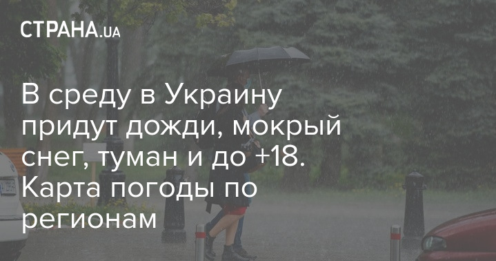 В среду в Украину придут дожди, мокрый снег, туман и до +18. Карта погоды по регионам
