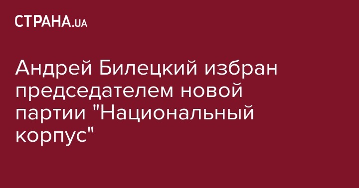 Народный депутат Андрей Билецкий на 4 года избран главой партии "Национальный корпус", которая создана на базе Гражданского корпуса "Азов". Об этом сообщает 112 Украина.