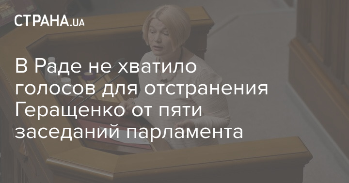 В Верховной Раде не хватило голосов для отстранения нардепа от Евросолидарности Ирины Геращенко на пять заседаний за то, что она еще в сентябре обозвала коллег из "Слуги народа" "зелеными человечками", которые оккупировали Крым в 2014 году. За отстранение дали всего 190 голосов (при минимуме 226) и решение не было принято.