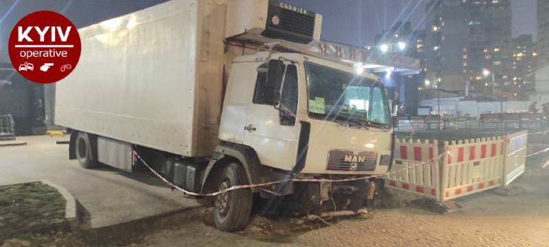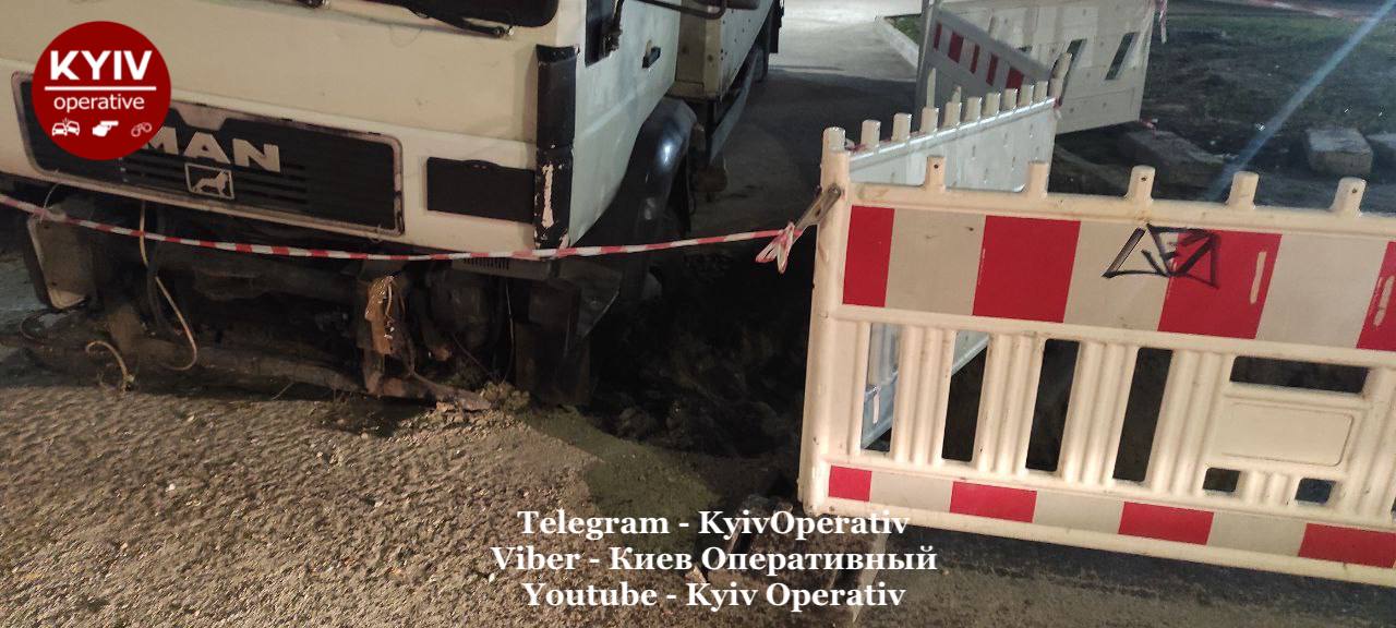В Киеве грузовик угодил в яму, разрытую накануне коммунальными службами